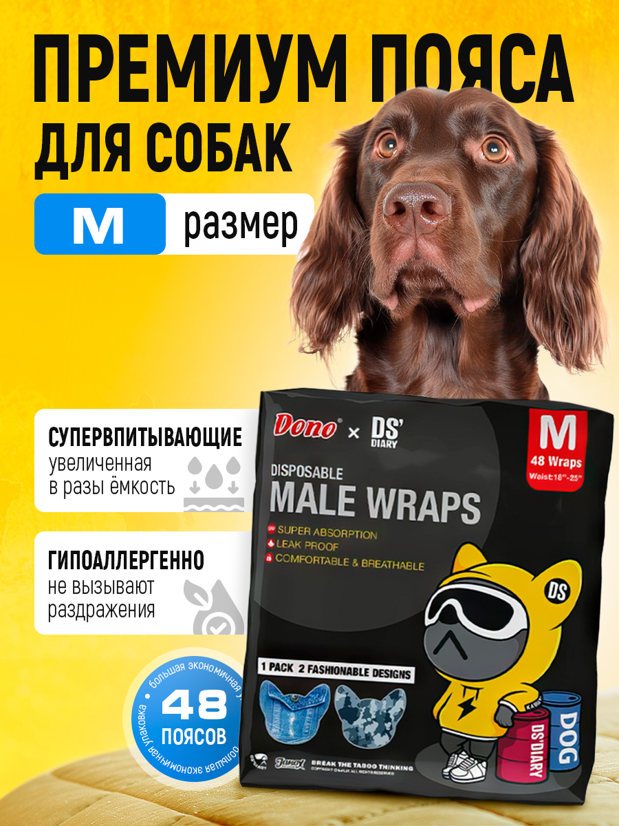 Пояс для кобелей и щенков (подгузник) DONOxDS Male Wraps , M 48 шт.